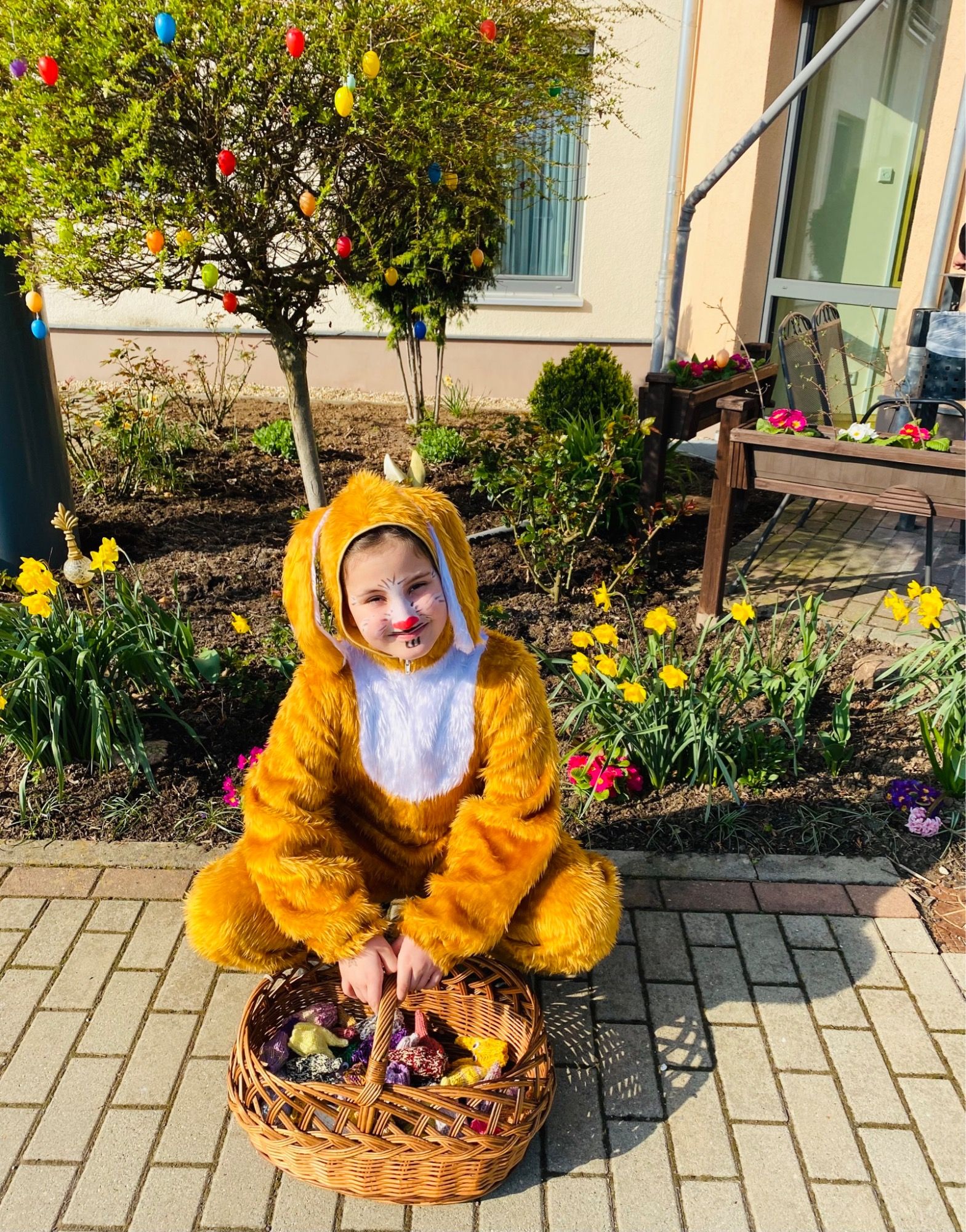 Osterhase Danielo mischte sich unter die Besucher und verteilte zur Einstimmung auf Ostern Süßigkeitenbeutel an die Kinder.