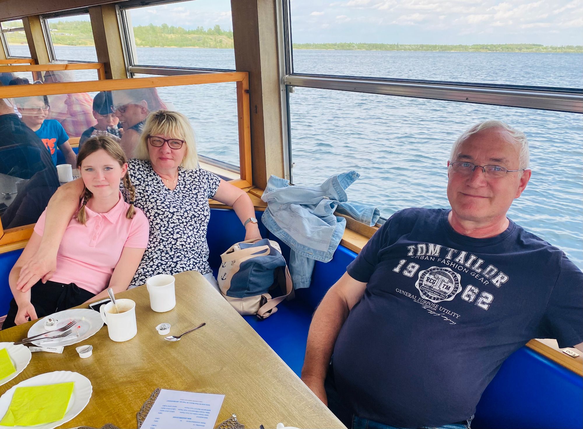 Auf einer 75minütigen Seerundfahrt mit dem größten Fahrgastschiff MS Geiseltalsee ging es ab 15:00 Uhr bei Kaffee, Kuchen und einigen Erläuterungen des Kapitäns vorbei an malerischen Buchten, kleinen Häfen und Naturschutzgebieten, die das ehemalige Tagebaugebiet geschaffen hat. Auch die Sonne fand am Nachmittag noch den Weg zu uns.